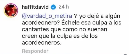 Estas declaraciones, sumadas al mensaje de Haffit David, han reavivado una discusión frecuente en el vallenato: el equilibrio entre cantante y acordeonero, y quién carga realmente con el peso del éxito o el fracaso.