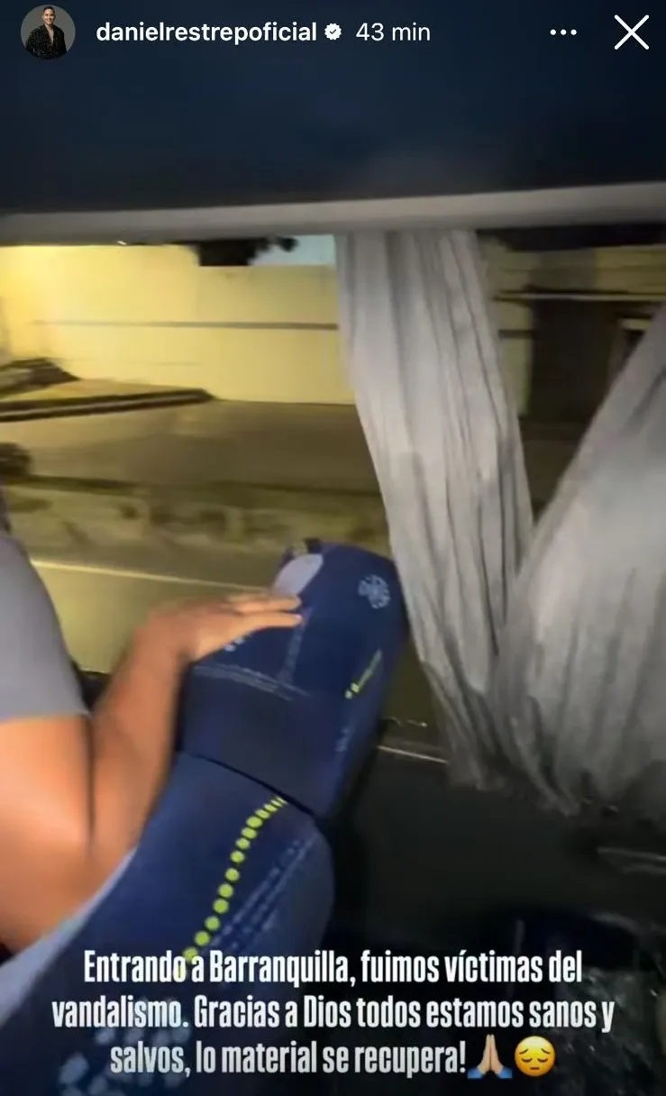 Según el relato compartido por Daniel Restrepo, dos sujetos que se movilizaban en motocicletas habrían lanzado piedras contra el bus en el que viajaba el equipo, provocando daños materiales y momentos de pánico entre los ocupantes. El ataque ocurrió mientras se desplazaban por la Vía 40, una zona de alto flujo vehicular.